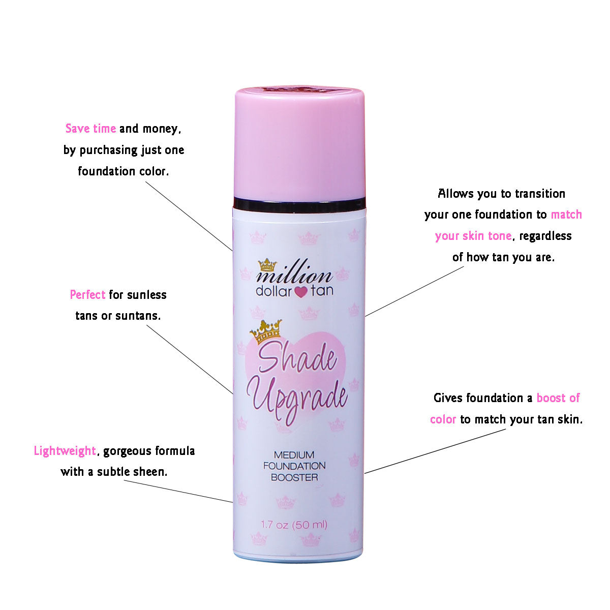 - FOR THE BRONZED – Shade Upgrade by Million Dollar Tan is best for those with a medium-dark complexion seeking to add a rich, finishing touch. For other complexions see our other boosters