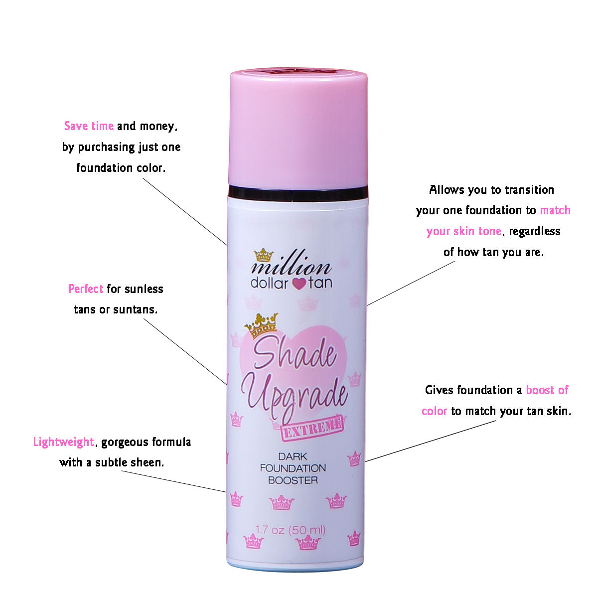- FOR THE BRONZED – Shade Upgrade by Million Dollar Tan is best for those with a medium-dark complexion seeking to add a rich, finishing touch. For other complexions see our other boosters